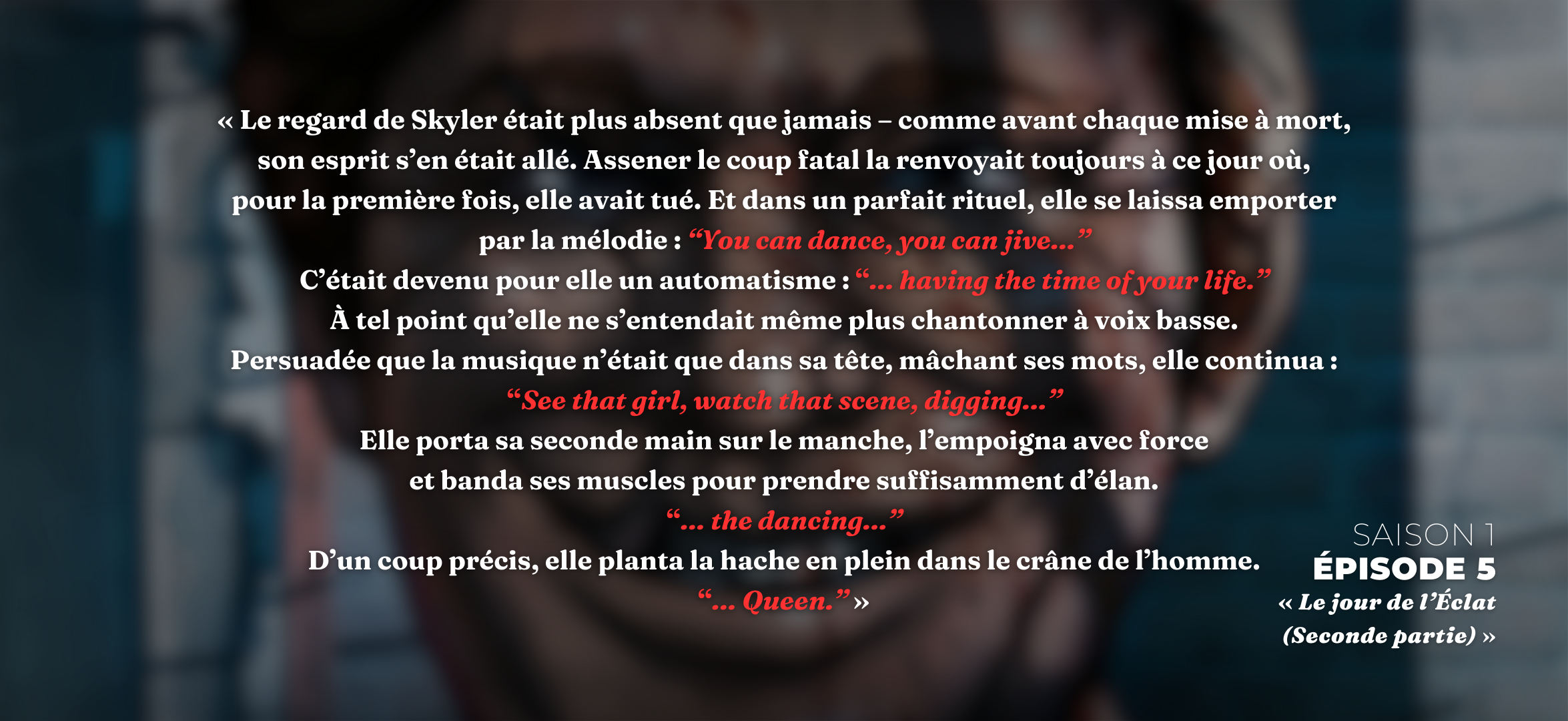 « Mais il ne fallait pas non plus être naïf : un survivant affamé est prêt à tout pour survivre – elle ne le savait que trop bien. »